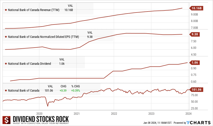 Here are Mike’s thoughts on where my favourite Canadian Dividend King (National Bank) stacks up against other Canadian dividend stocks for 2024.